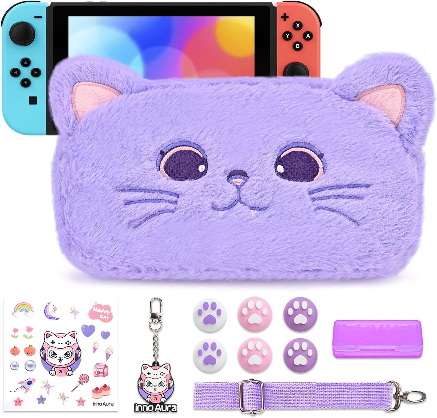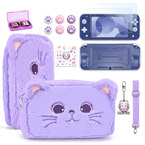 innoAura Étui Switch Lite,Pack d’accessoires 14 en 1 pour Switch Lite avec étui de transport mignon,protecteur d’écran Switch Lite,étui de jeu Switch,bouchons pour les pouces Switch (Chat Violet)