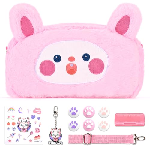 Étui Switch pour NS Switch,Pack d’accessoires 11 en 1 innoAura pour Switch avec étui de transport Switch,étui de jeu Switch,bouchons pour les pouces Switch,bandoulière amovible(Lapin Rose)