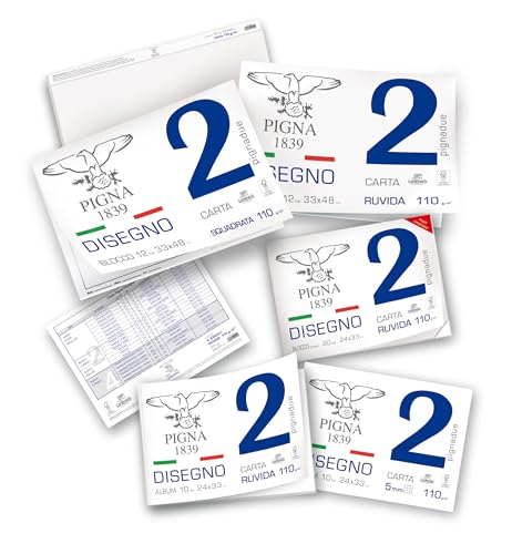 Pigna, PignaDue Cahier à dessin avec 4 coins, format 24x33 cm, 20 feuilles 110 g/m², parfait pour le dessin et l'esquisse, papier carré lisse, paquet 1 pc.