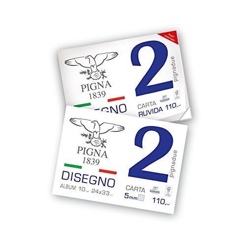 Pigna, PignaDue Cahier à dessin avec 4 coins, Format 24x33 cm, 20 feuilles 110 g/m², Parfait pour le dessin et l'esquisse, Papier rugueux, Pack 1 pc.