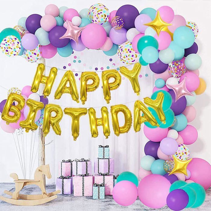Décoration baptême garçon - ZOKKO - 131 pièces - 4 boîtes à ballons - Arche ballon bleu - 27 lettres