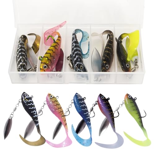 VIPMOON Leurre Souple leurre Peche mer pagaie Automatique 12,5 g 5pcs en Caoutchouc Souple - avec boîte de Rangement - 9 cm - pour Truite, Sandre et Perch