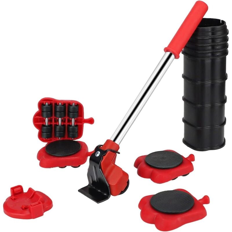 Kit Déplacement Meuble Lourd 150kg sans Effort, 5 en 1 avec roulettes Multidirectionnelles Lève-Meuble Hydraulique, pour Gros Objets, Protection Sols et Tapis Usage Domestique