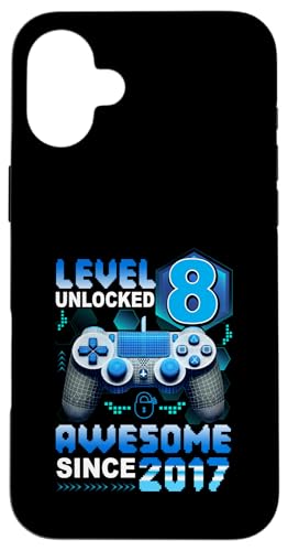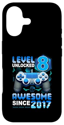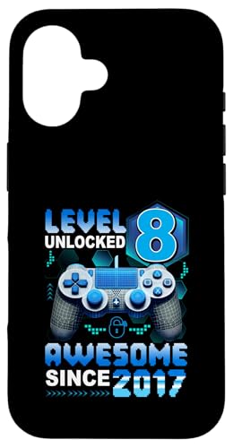 Contrôleur d'anniversaire de Jeu vidéo débloqué Niveau 8 Depuis 2017 Coque pour iPhone 16 Plus