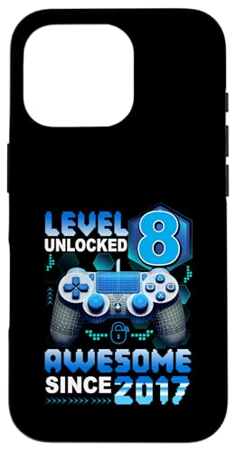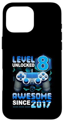Contrôleur d'anniversaire de Jeu vidéo débloqué Niveau 8 Depuis 2017 Coque pour iPhone 16 Pro Max