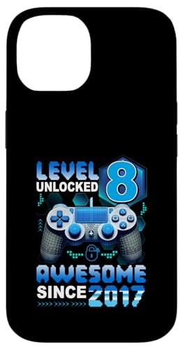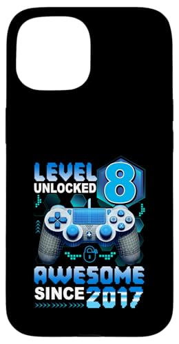 Contrôleur d'anniversaire de Jeu vidéo débloqué Niveau 8 Depuis 2017 Coque pour iPhone 15 Plus