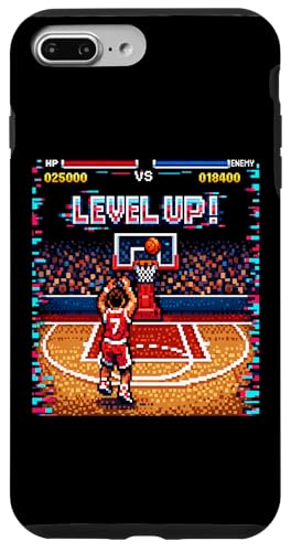 Basketball Level Up Retro Pixel Art Jeu vidéo Gamer Coque pour iPhone 7 Plus/8 Plus