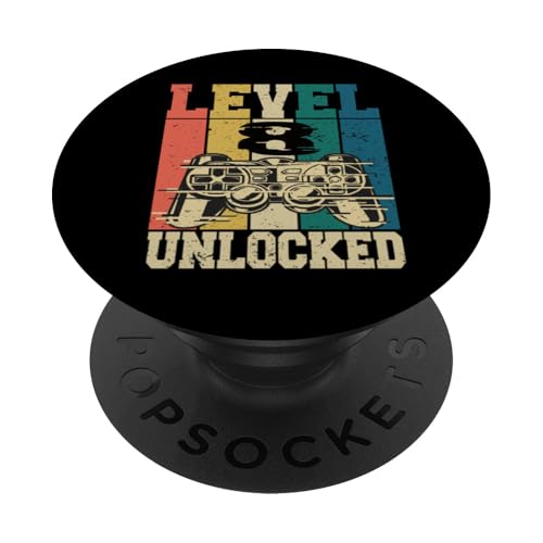 Niveau 8 Débloqué 8e Anniversaire Jeu Jeu 8e Anniversaire Gamer PopSockets PopGrip Adhésif