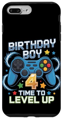 Birthday Boy Time to Level Up Gamer Jeu vidéo 4 Ans Coque pour iPhone 7 Plus/8 Plus
