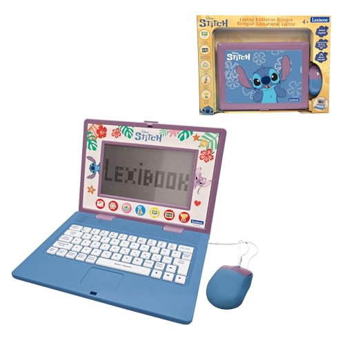LEXIBOOK, Disney Stitch JC598Di2 Ordinateur éducatif bilingue en Anglais/Espagnol, 124 activités de Langue, écriture, mathématiques, logique, Musique et Jeux pour garçons et Filles