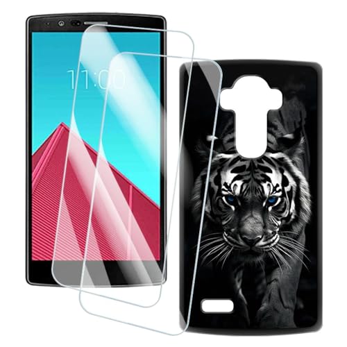 OAGELIM 2 Pack Protège-Écran + Coque Compatible avec LG G4 (5.5 Pouce) Coque Impression Artistique Personnalisée et Film Verre Trempé (Tigre)
