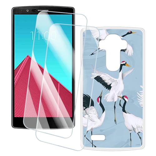 OAGELIM 2 Pack Protège-Écran + Coque Compatible avec LG G4 (5.5 Pouce) Coque Impression Artistique Personnalisée et Film Verre Trempé (Grue)