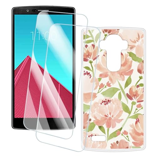OAGELIM 2 Pack Protège-Écran + Coque Compatible avec LG G4 (5.5 Pouce) Coque Impression Artistique Personnalisée et Film Verre Trempé (Fleurs)