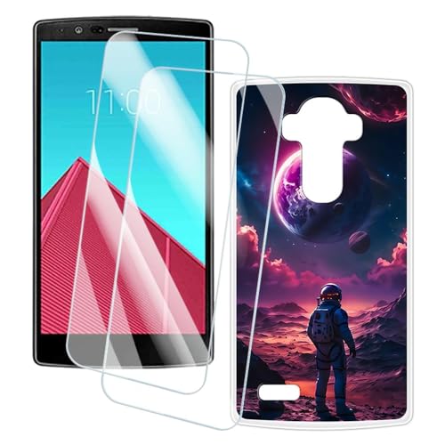 OAGELIM 2 Pack Protège-Écran + Coque Compatible avec LG G4 (5.5 Pouce) Coque Impression Artistique Personnalisée et Film Verre Trempé (Astronaute)