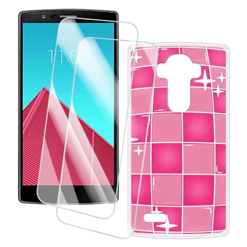 OAGELIM 2 Pack Protège-Écran + Coque Compatible avec LG G4 (5.5 Pouce) Coque Impression Artistique Personnalisée et Film Verre Trempé (Monde Rose)