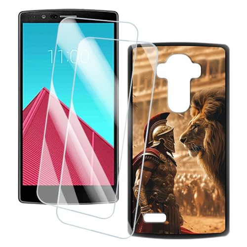 OAGELIM 2 Pack Protège-Écran + Coque Compatible avec LG G4 (5.5 Pouce) Coque Impression Artistique Personnalisée et Film Verre Trempé (Guerrier)
