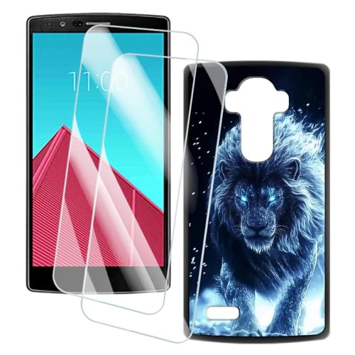 OAGELIM 2 Pack Protège-Écran + Coque Compatible avec LG G4 (5.5 Pouce) Coque Impression Artistique Personnalisée et Film Verre Trempé (Lion)