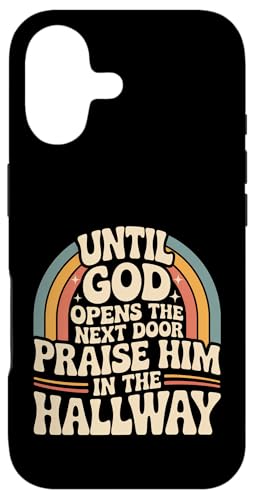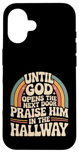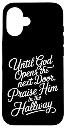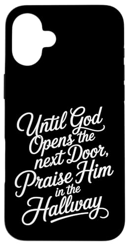 Praise God in Hallway Until He Opens Next Door - Coque pour iPhone 16 Plus