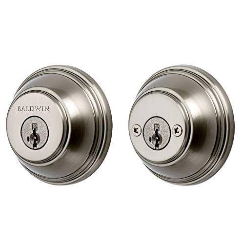 Baldwin Round, Double Cylinder Front Door Deadbolt Featuring SmartKey Re-key Technology and Microban Protection, in Satin Nickel