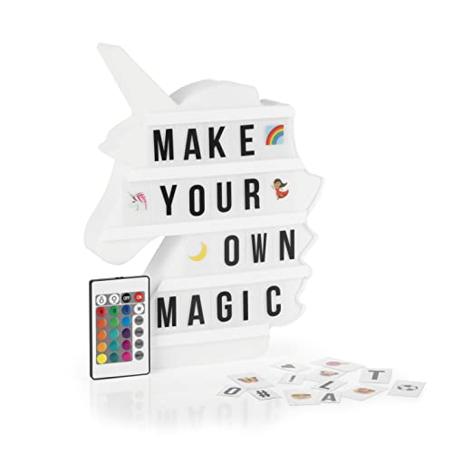 EASYmaxx Boîte lumineuse DEL Light Box - Pour des messages textuels personnalisés | Mega-set avec 150 emojis colorés et 173 lettres, chiffres et symboles interchangeables [licorne]