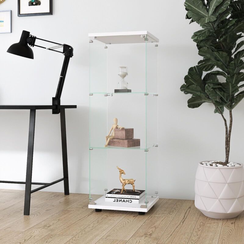 Dans Les Nuages – Vitrine en verre de sécurité trempé 42x36x125 cm – 3 étagères en bois massif – Serrures et clés – Pour bureau, salon, cuisine –