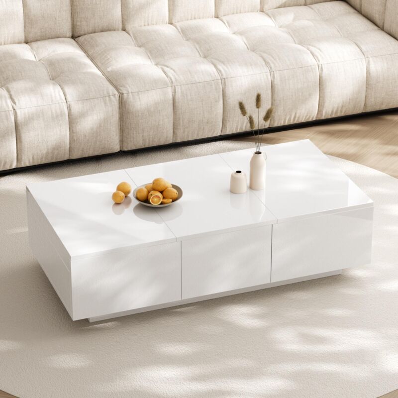 Dans Les Nuages - Table Basse rectangulaire 100 cm, avec 2 tiroirs, plateau extensible, espace de rangement, laquée haute brillance, style moderne
