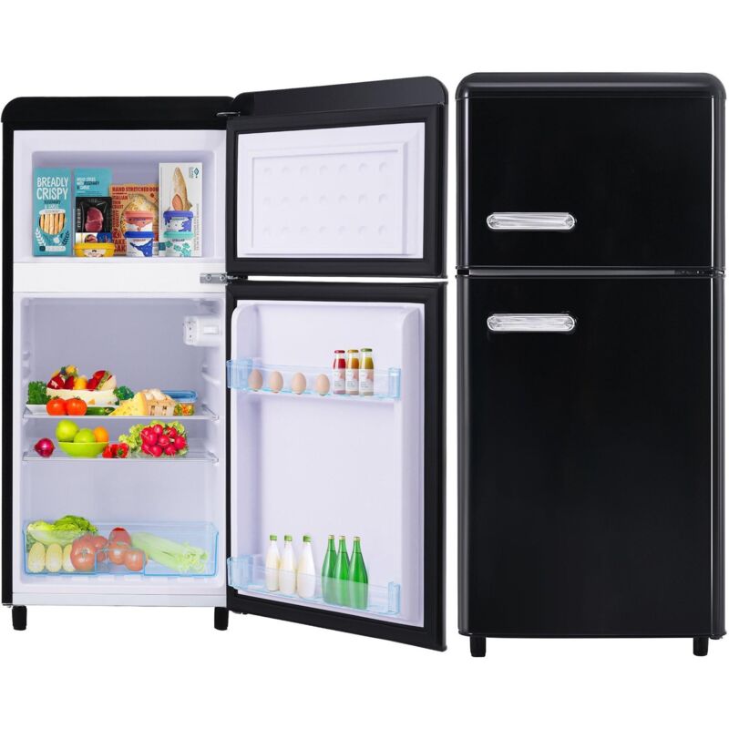 Dans Les Nuages – Réfrigérateur 92L 2 portes – Congélateur 28L 4 étoiles – Éclairage LED – Température -27 à 13°C – Classe F – Noir vintage