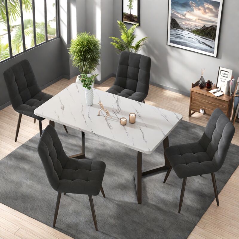 Dans Les Nuages - Lot de 4 Chaise de salle à manger, tissu lin, avec capitonné dossier, pieds en métal, design ergonomique - Gris