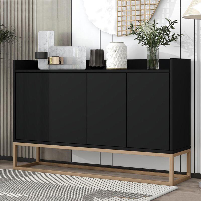 Dans Les Nuages – Buffet moderne 120 cm avec 4 portes – Étagères réglables – Cadre en métal doré – Fonction Push-to-Open – Noir