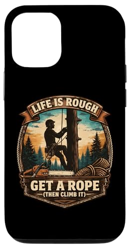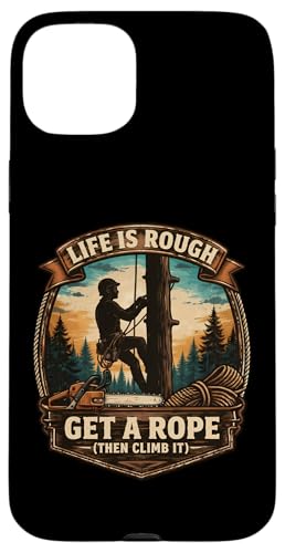 Funny Arborist Life is Rugh Get A Rope Then Climb It Tree Coque pour iPhone 16