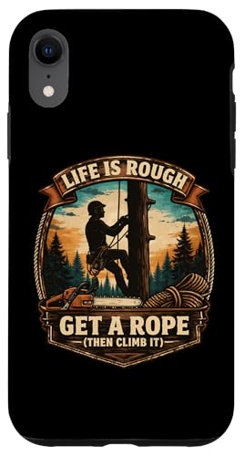 Funny Arborist Life is Rugh Get A Rope Then Climb It Tree Coque pour iPhone XR