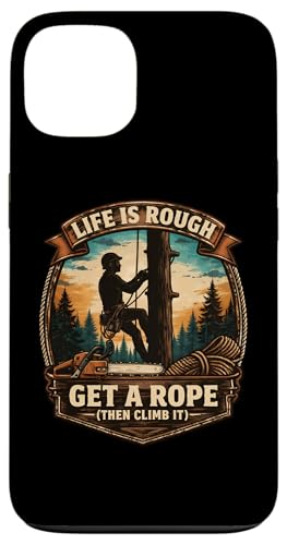Funny Arborist Life is Rugh Get A Rope Then Climb It Tree Coque pour iPhone 13