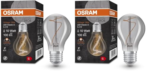 Osram Vintage 1906 smoke tinted LED lamp, 3.4W, 100lm, classic bulb shape (Classic A) with E27 base, warm white light, non-dimmable filament, life of up to 15,000 hours (Lot de 2)