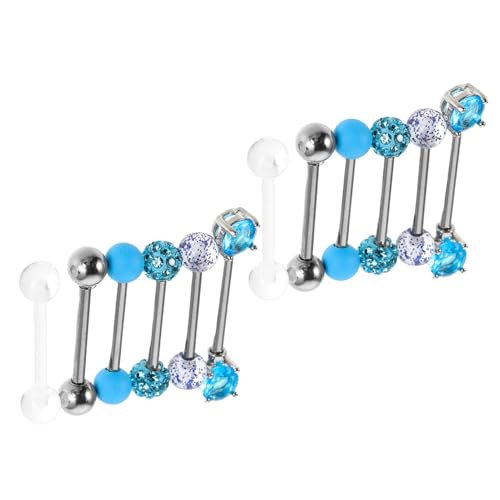 BESPORTBLE 12 pièces Dumbbell Tongue Rings Set With Acrylic Pearl And Zircon Stainless Steel Barbell Piercing Jewelry For Women And Men Lightweight Skin Friendly For Daily Party Wear