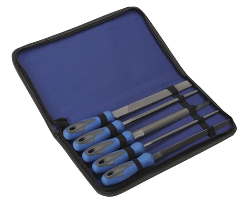 Lot de 5 limes en métal de 200 mm avec poignée en nylon, idéales pour la mise en forme et la finition de matériaux dans les travaux manuels et le bricolage.