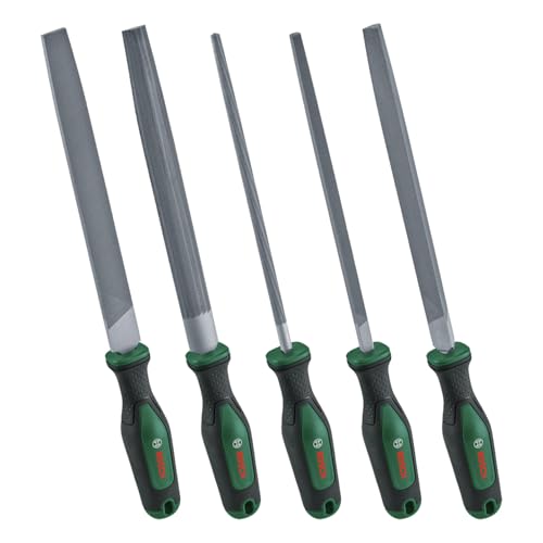 Bosch Set de 5 limes (en métal, robustes : limes ronde/demi-ronde/plate/triangulaire/carrée ; acier au carbure dur ; longueur de manche 200 mm ; course moyenne 2 ; Softgrip)