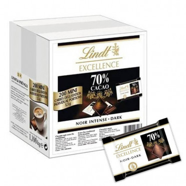 Chocolat Lindt Excellence Noir 70% Cacao - 200 chocolats emballés individuellement