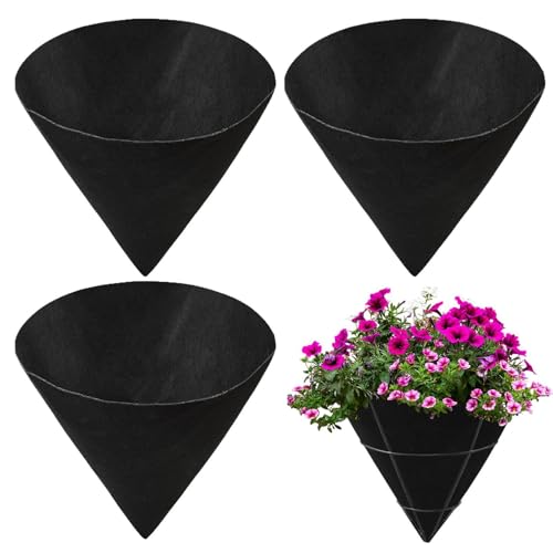 Générique Planter Liner,3 Pieces Non Woven Flower Pot Liner - Cone Shaped Waterproof Growing Mat Felt Planting Accessories Radishes, Lawn & Yard