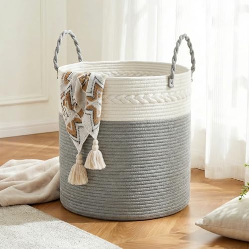 URBNLIVING Panier à linge sale en plastique 45 l - Panier à linge sale - Panier de rangement - Beige