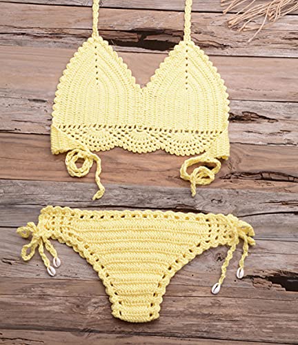 Maillot De Bain Ensemble De Bikini Sexy Ensembles De Lingerie Sexy Ensemble De Bikini Tricoté Femmes Maillot De Bain Au Crochet Beach-Yellow_M