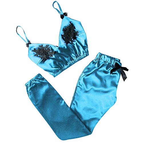 Générique Lingerie Sexy Hot Chaude Grande Taille,Lingerie Nightdress Sexy Satin 2Pcs Dentelle Sleepwear Set Pyjamas (Blue, S)