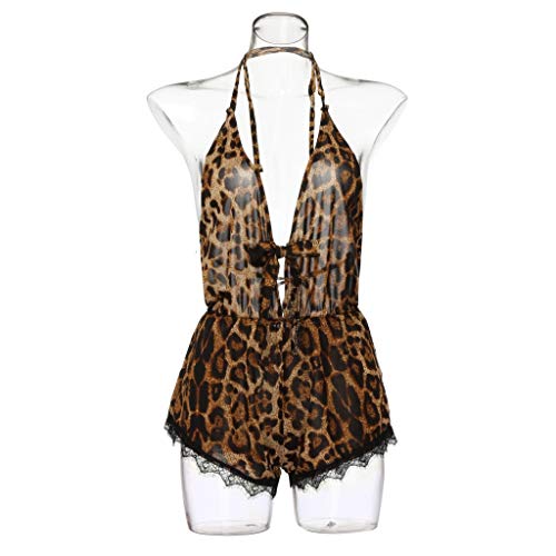 Générique Lingerie Sexy Hot Chaude Grande Taille,Bow Lingerie Plus Dentelle Taille Sexy Leopard Romper Bodysuit sous-VêTements (Brown, XXL)