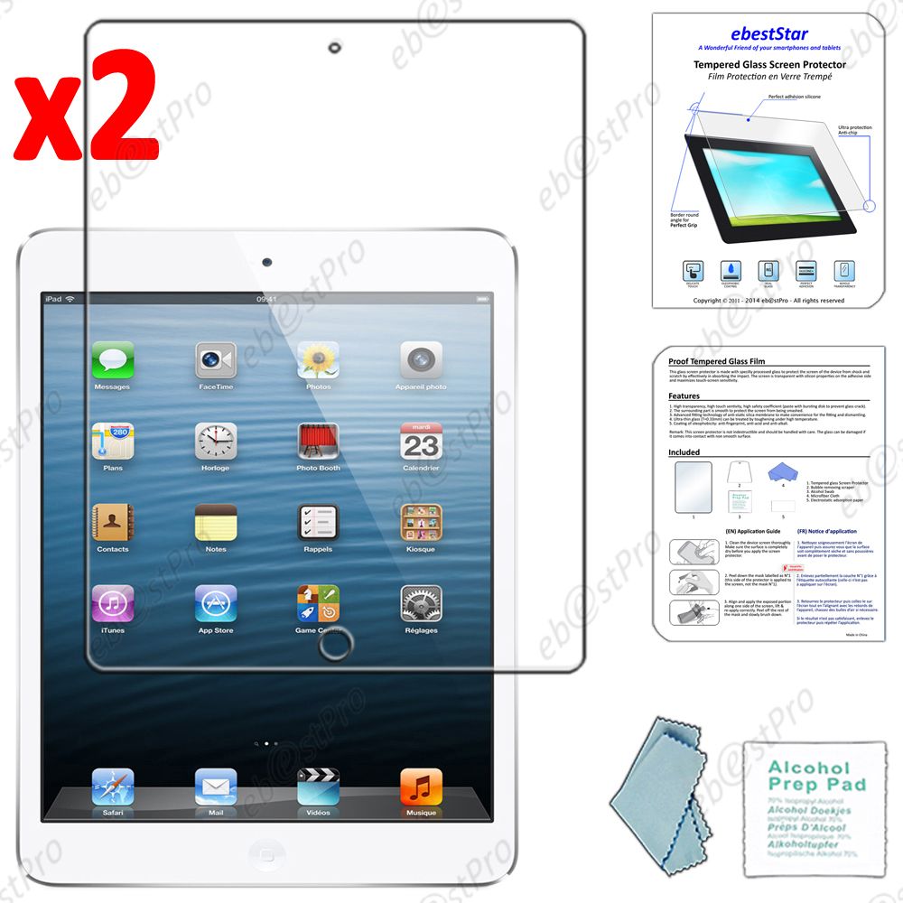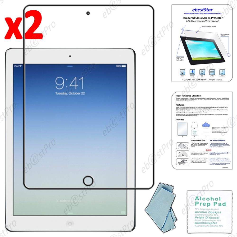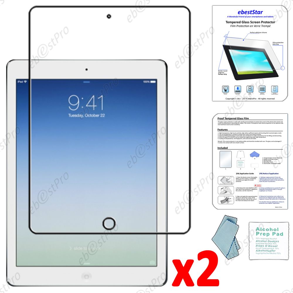Ebeststar ® Pour Apple Ipad Air, Ipad 5, Ipad Air Wi-Fi, 3g Lot X2 Verre Trempé Protecteur Anti Casse, Anti-Rayure, Anti Choc Vitre Protection + Lingette De Nettoyage / Accessoires Pour La Pose