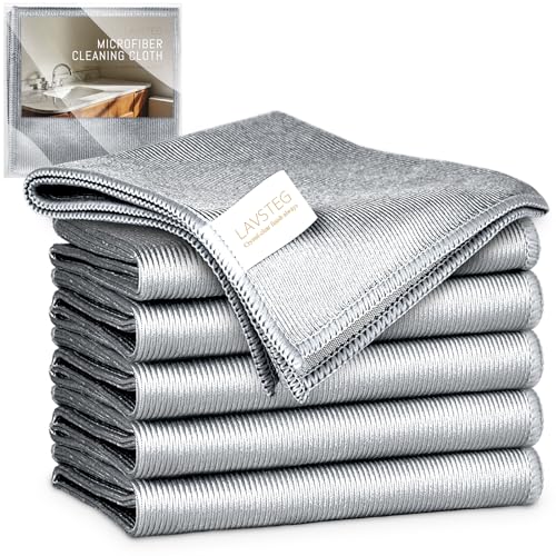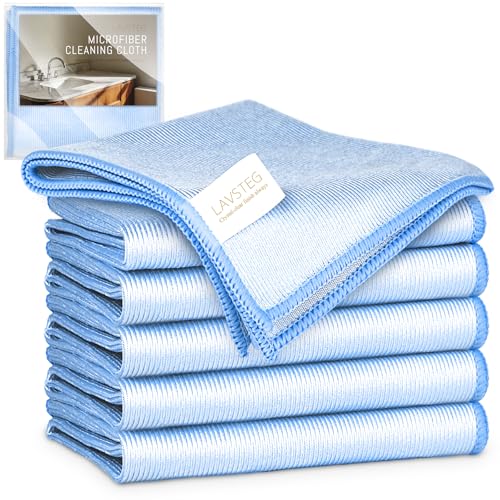 LAVSTEG Chiffon Magique Microfibre, 6X Serviette sans Trace Absorbant Polissage, Lingette Essuie Vitre Verre Lunette Miroir Vaisselle Cuisine Menage Voiture, Torchon Nettoyage Réutilisable Lavable