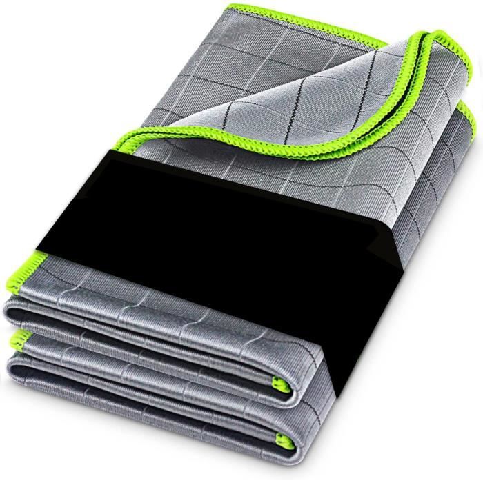 Chiffon Magique Microfibre Carbone 400GSM, Serviette Sans Trace Absorbant Polissage, Lingette Essuie Verre Vitre Lunette Vaisselle Cuisine Menage