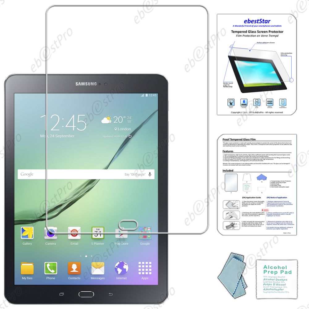 Ebeststar ® Film Protection En Verre Trempé (Tempéred Glass), Vitre Protecteur Anti Casse, Anti-Rayure, Anti Choc Pour Samsung Galaxy Tab S2 9.7 Sm-T810, Sm-T815 + Lingette De Nettoyage / Accessoires Pour La Pose