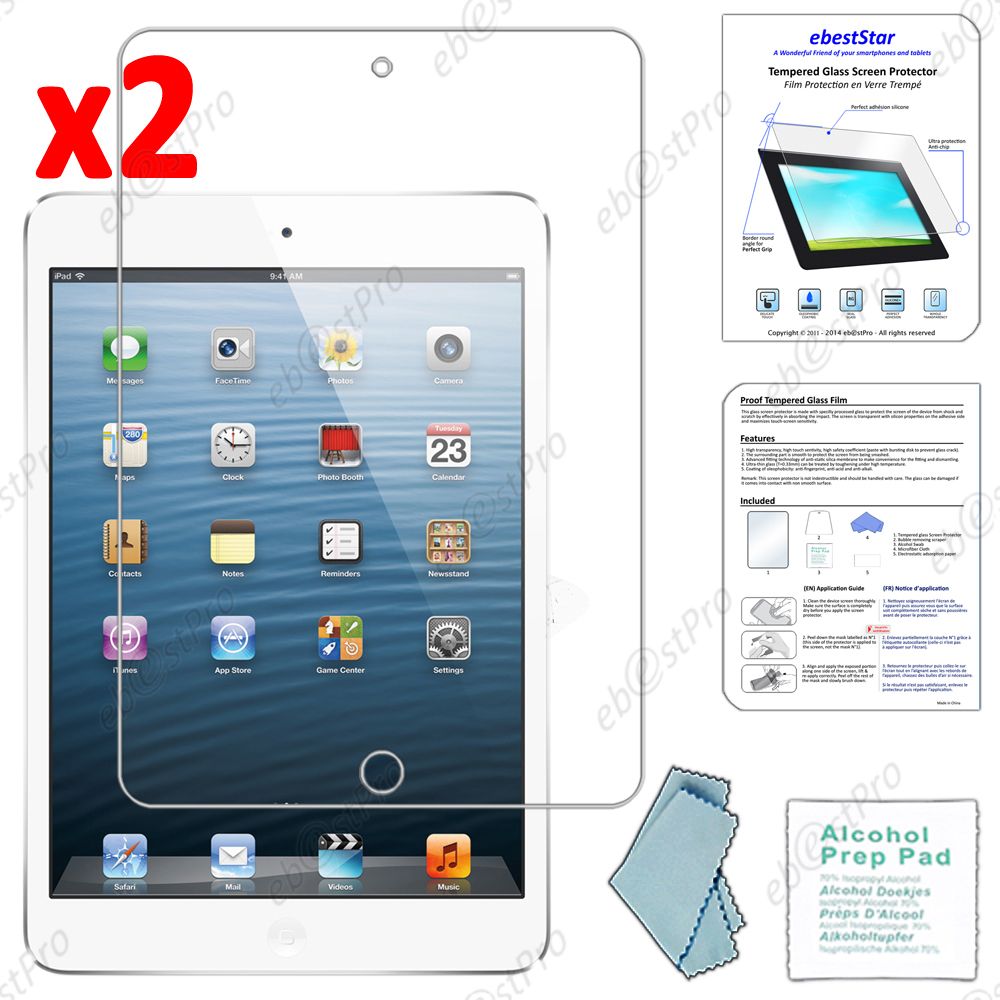 Ebeststar ® Lot X2 Film Protection En Verre Trempé Vitre Protecteur Anti Casse, Anti-Rayure, Anti Choc Pour Apple Ipad Mini 1 + Lingette De Nettoyage / Accessoires Pour La Pose