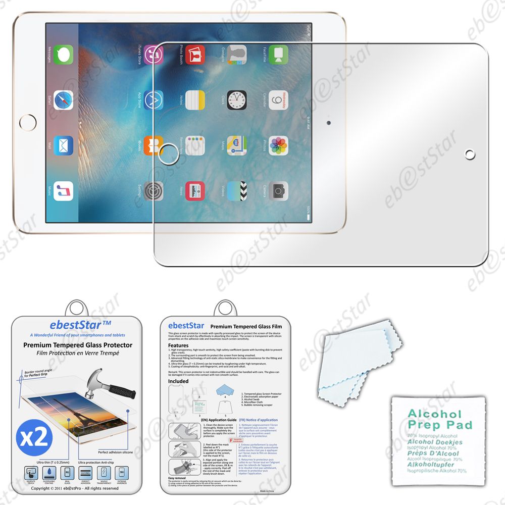 Ebeststar ® Lot X2 Film Protection En Verre Trempé Vitre Protecteur Anti Casse, Anti-Rayure, Anti Choc Pour Apple Ipad Mini 4 + Lingette De Nettoyage / Accessoires Pour La Pose