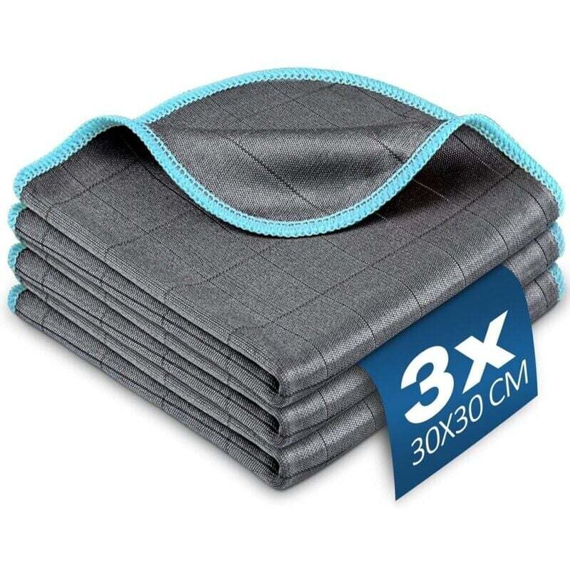 3 Pcs Microfibre Carbone, 30×30CM Chiffon Magique Vitre Lunette, 400GSM Chiffon Fibre, Serviette Sans Trace Absorbant Polissage, Torchon Nettoyage Réutilisable Lavable, Lingette Essuie Vitre Verre