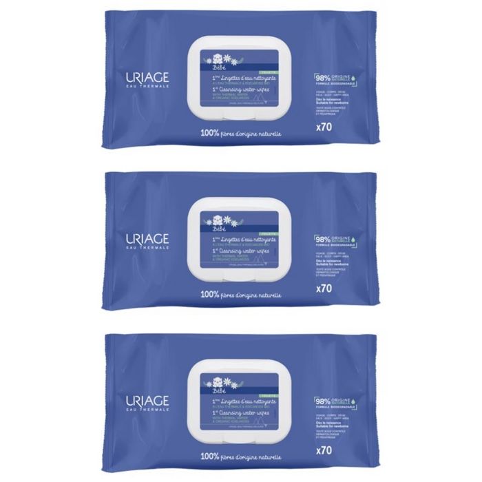 URIAGE Bébé 1ERE Nettoyage Eau Lingettes 70 Pièces en Un Set Visage Corps Couche
